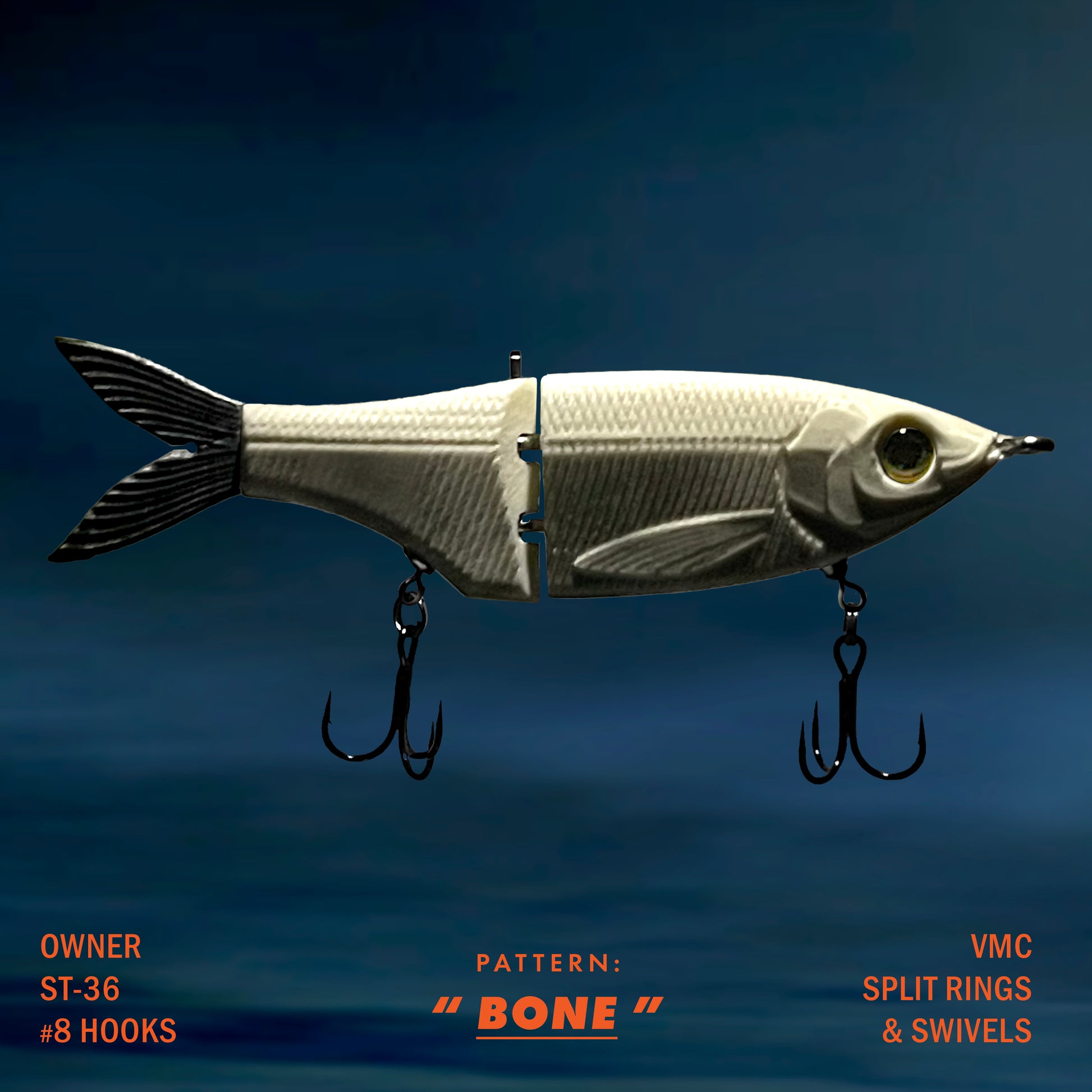 3.5" ( 8.5cm ) | 1/4oz ( 8g ) - SLOW SINKING - Handcrafted in ultra-durable solid resin and tungsten-weighted for exceptional stability. Nimbull glides wide, chops crisply, burns fast and true. - Premium hardware: OWNER ST36 #8 hooks and VMC split rings and swivel hook hangers. - Best fished on a BFS or light finesse setup with light line (6-10lb braid to flouro leader) and a high-speed reel (7:1+). - *PREORDER - WILL NOTIFY WHEN READY TO SHIP ( estimated ship date: mid November )
